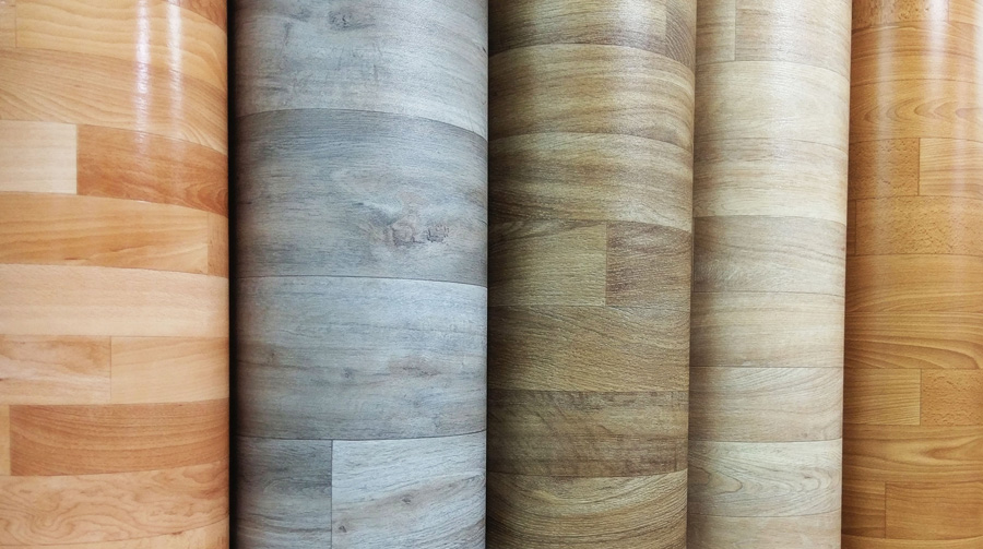 e) Parquet de madera / Similar a baldosas plásticas.